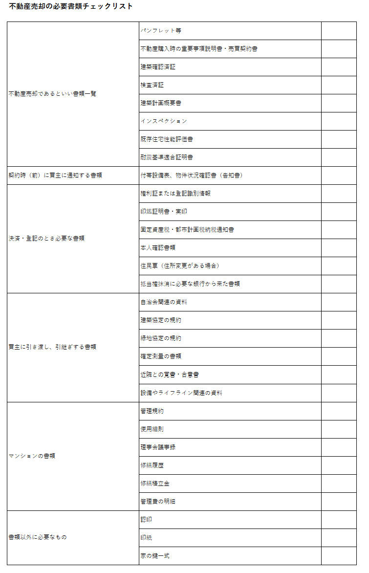 📖管理規約、使用細則、理事会議事録、修繕履歴、修繕積立金・管理費の明細(マンションの場合) | マンションを売却する場合は、管理組合が発行する「管理規約」「使用細則」、過去の「修繕履歴」や「長期修繕計画」が重要になります。 買主が安心して購入できる判断材料となり、スムーズな契約につながります。区分所有法に基づき、管理組合のルールは引き継がれるため、最新の資料を用意しておくと親切です。 |