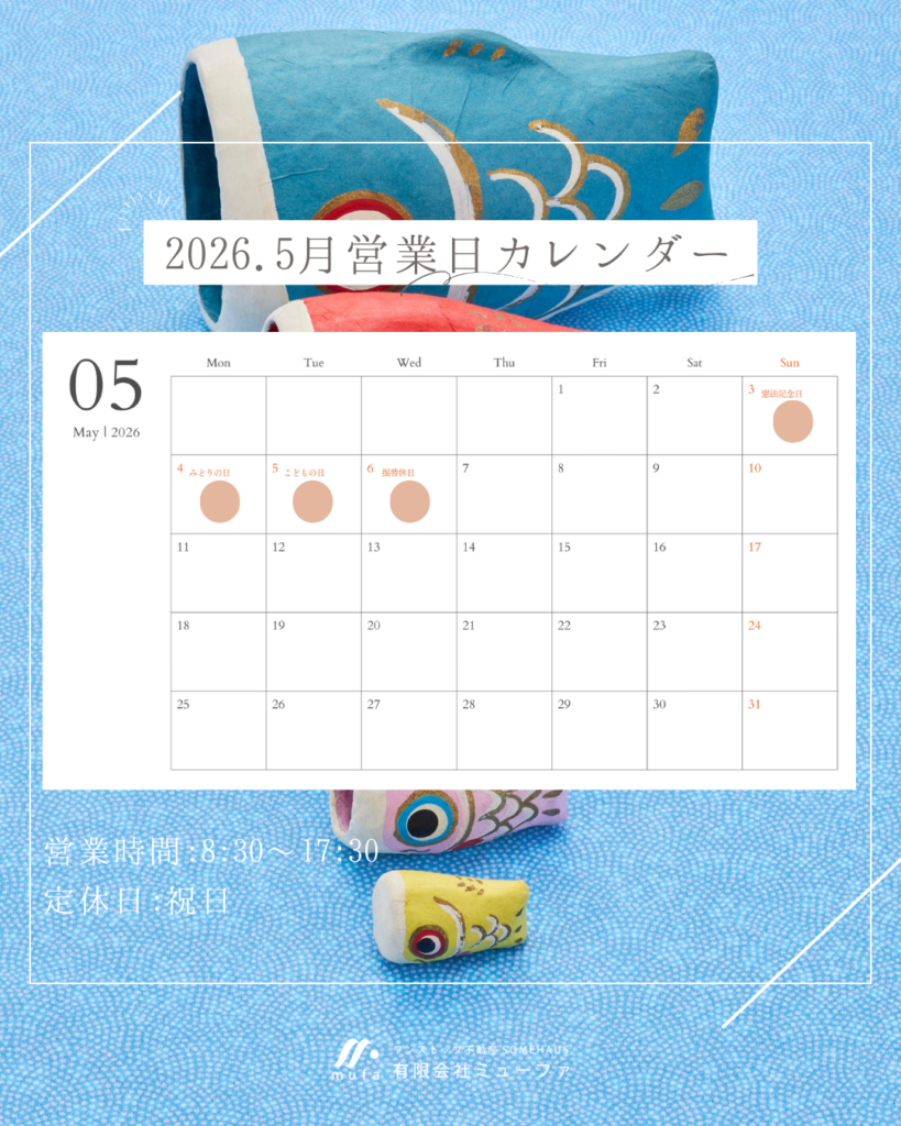 2026年|5月営業日|有限会社ミューファ